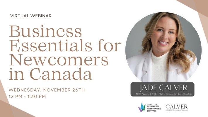 The session will be led by Jade Calver, RCIC and CEO of Calver Immigration Consulting Inc., who brings extensive expertise in immigration and business regulations.